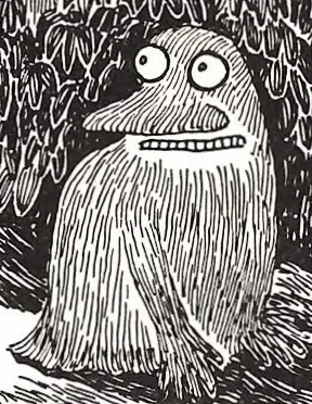The Groke (Finnish: Mörkö, Swedish: Mårran) is a character in the Moomin world created by Tove Jansson. Wherever she stands, the ground below her freezes and plants and grass die. She leaves a trail of ice and snow when she walks on the ground. Anything she touches will freeze, and fire quickly extinguishes when she goes near it. She seeks friendship and warmth, but she is declined by everyone and everything, leaving her to live in her cold cavern on top of the Lonely Mountains.